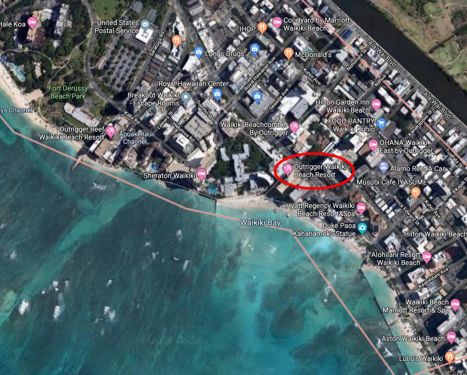 그 중에서도 아웃리거 와이키키 비치 리조트는 와이키키 해변에 붙어있으면서 정중앙에 위치하고 있어